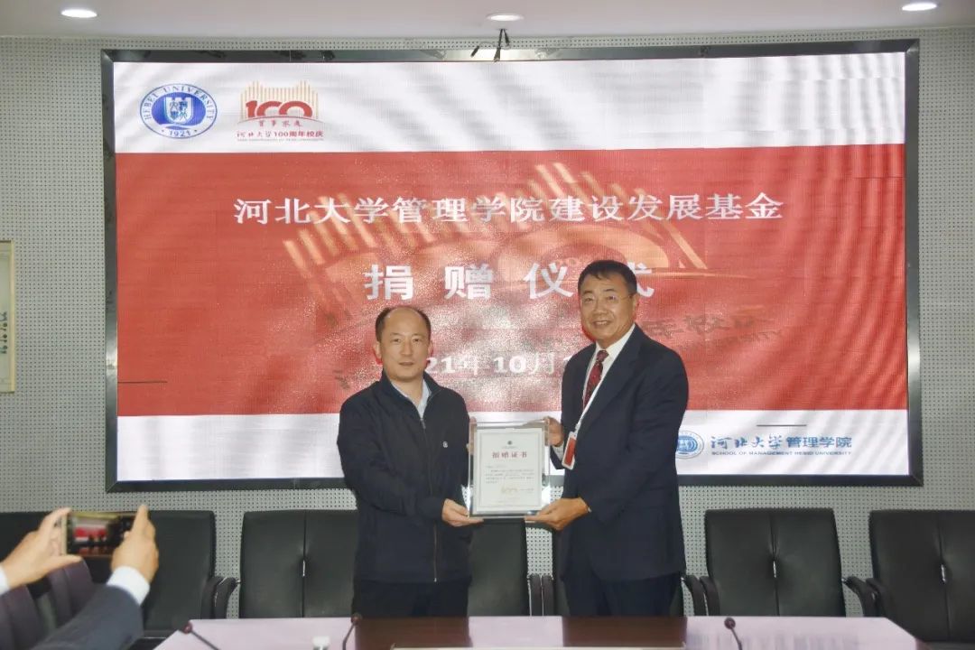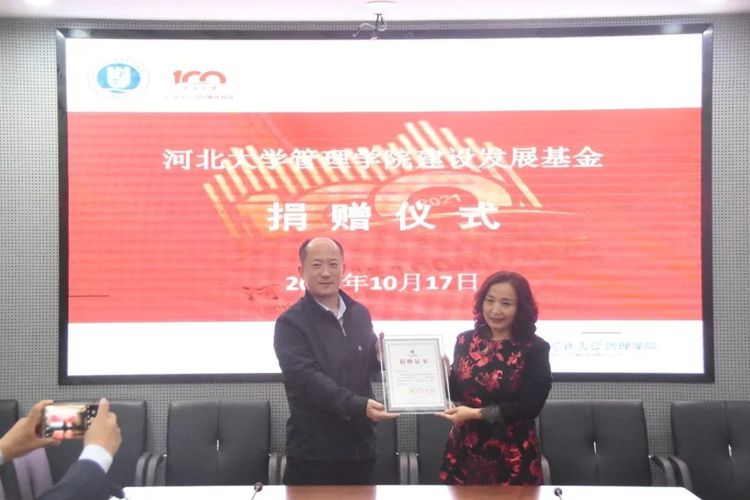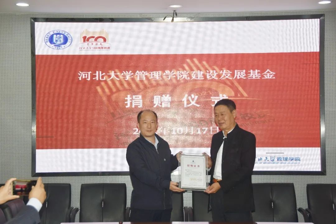 10月17日下午,best365网页版登录在七一路校区B1 217会议室举行了百年校庆校友捐赠仪式。石家庄旺泽商贸有限公司总经理王启天先生,石家庄辉煌园艺有限公司董事长张艳女士,河北帅康座椅有限公司董事长昝贺伏先生,河北大学期刊社社长闫树涛,best365网页版登录领导班子出席仪式。best365网页版登录副书记、副院长马辉主持仪式。