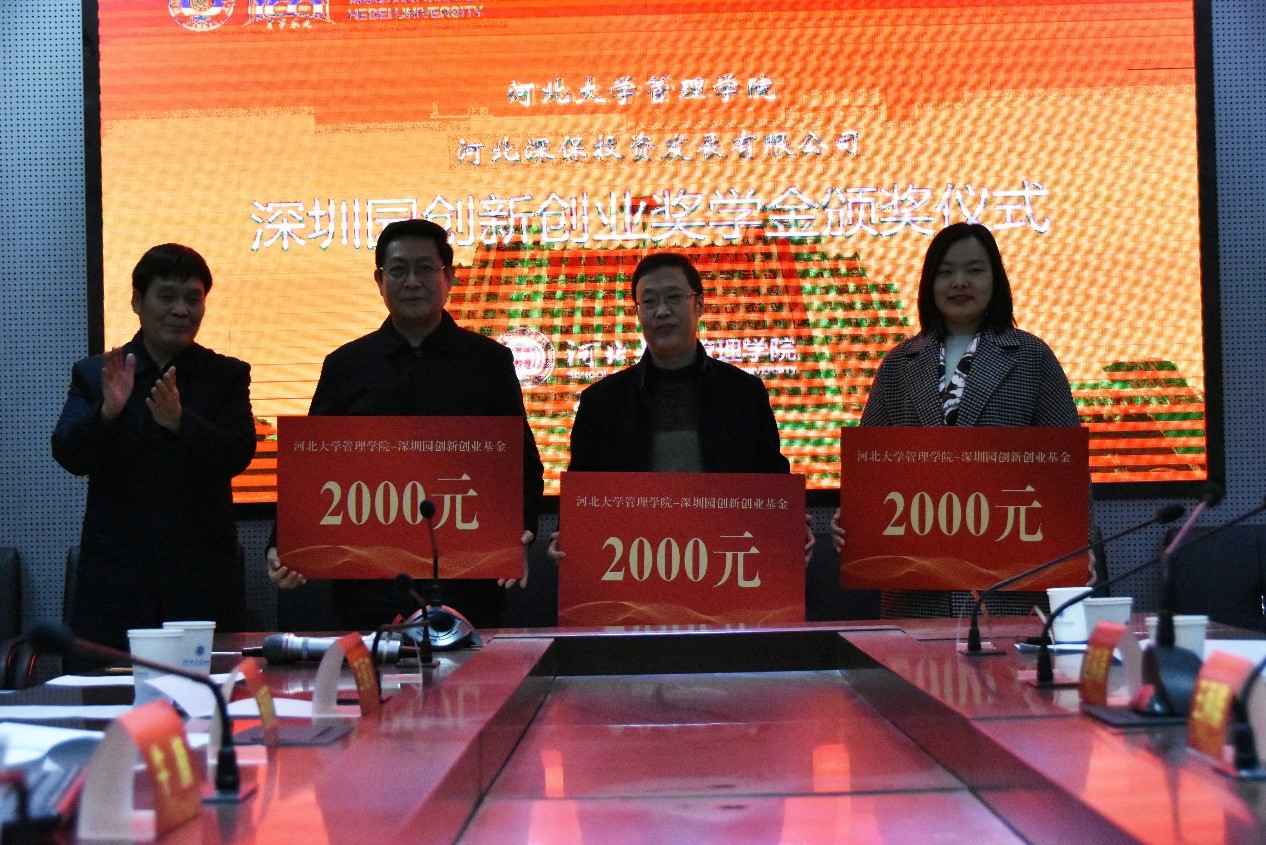 2021年12月16日,深圳园创新创业奖学金颁奖仪式在best365网页版登录会议室隆重举行。best365网页版登录党委书记赵林涛、河北深保投资发展有限公司总经理王两群、best365网页版登录副院长张社列、河北深保投资发展有限公司人力资源部部长赵小平、best365网页版登录MBA教师、2020级获奖MBA同学以及相关师生参加了颁奖仪式。仪式由best365网页版登录副院长张社列主持。