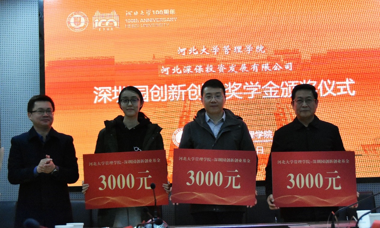 随后best365网页版登录党委书记赵林涛、深保发展有限公司总经理王两群、best365网页版登录副院长张社列、河北深保投资发展有限公司人力资源部部长赵小平分别为获奖师生颁发了奖项。