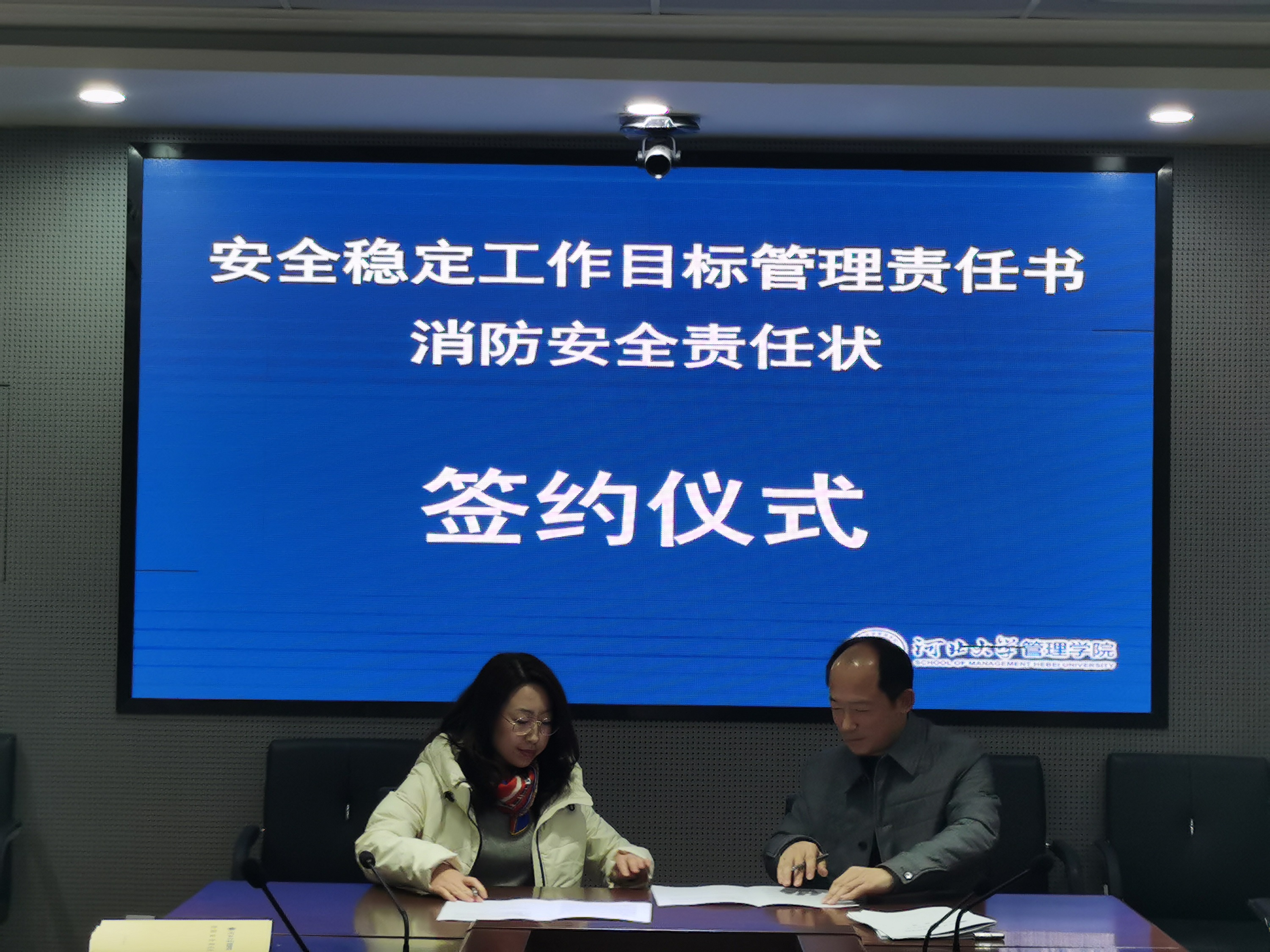 本次2021年安全稳定工作目标管理责任书和消防安全责任状签约仪式的成功举办,是对学院2020年整体安全稳定工作进行总结,也是对2021年学院安全稳定工作作出部署,我院将继续牢守安全底线,为学院和学校的改革发展、为安全文明和谐校园的建设创造良好环境。