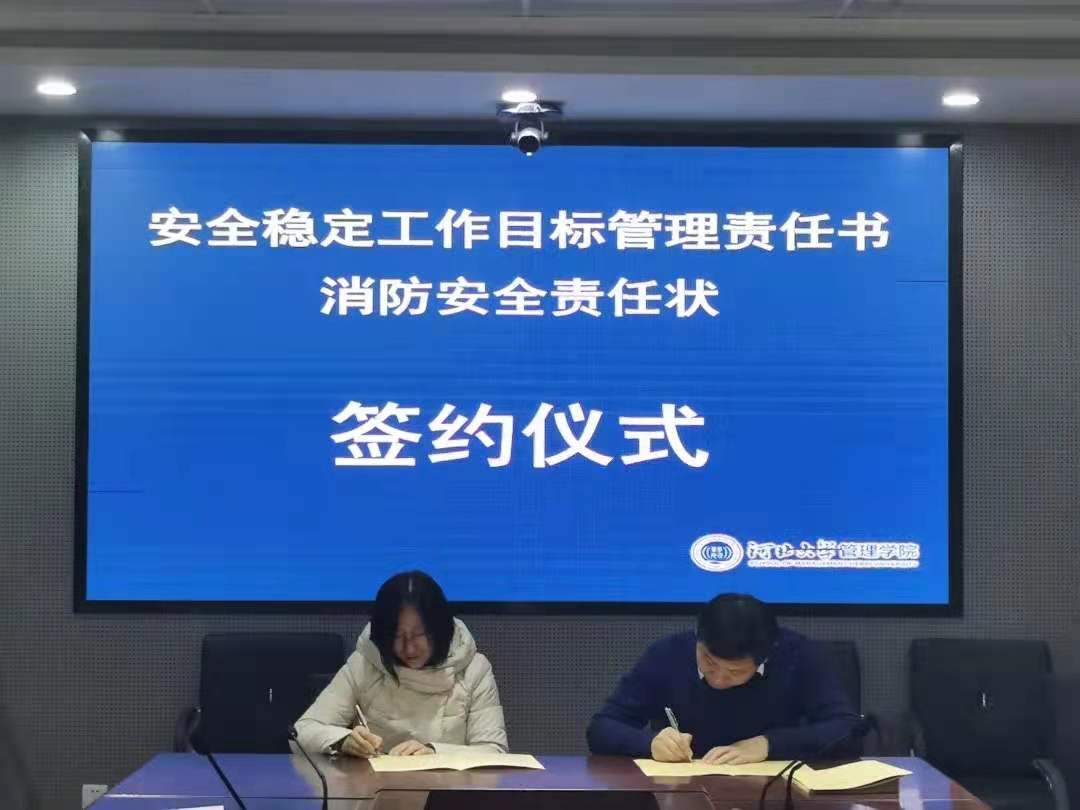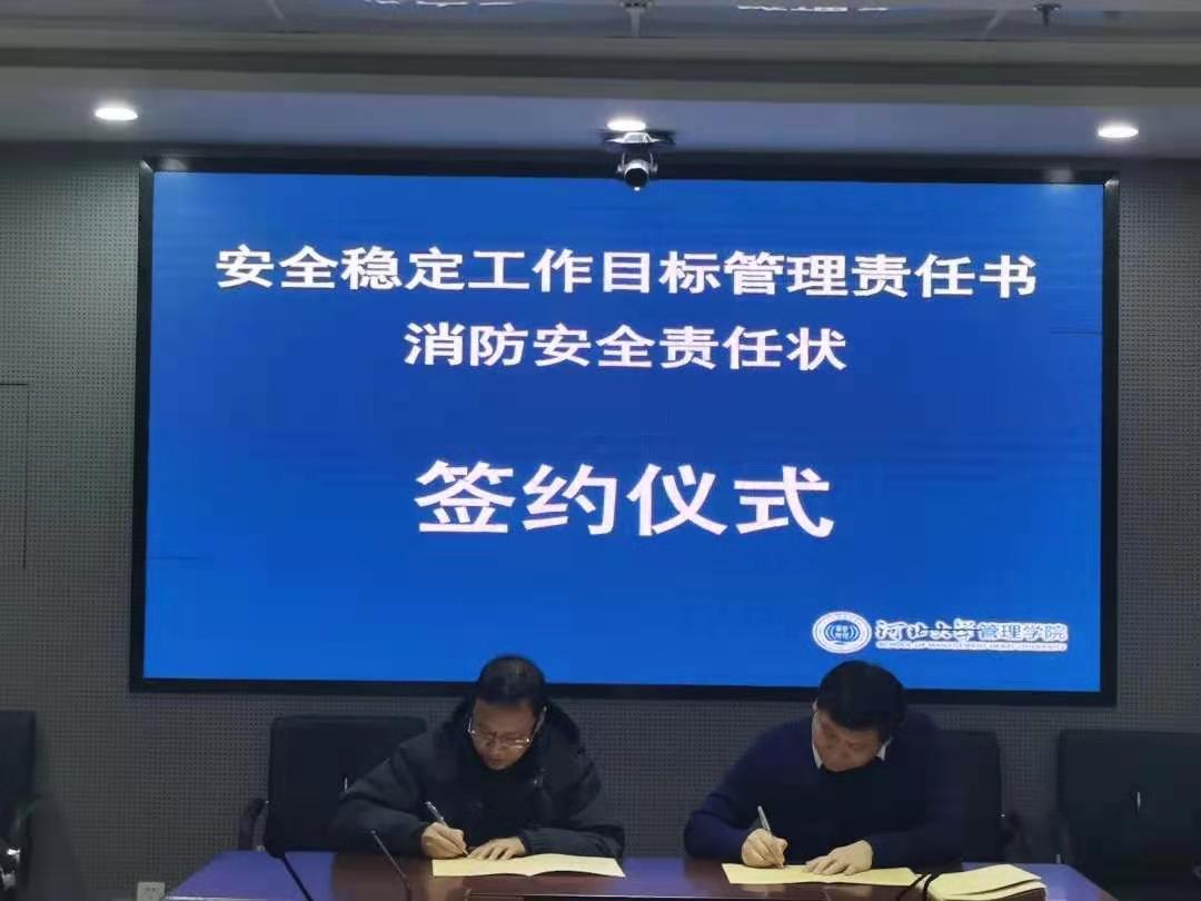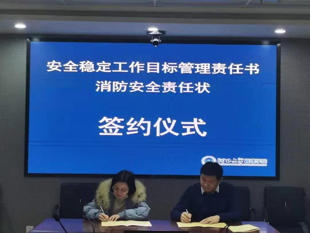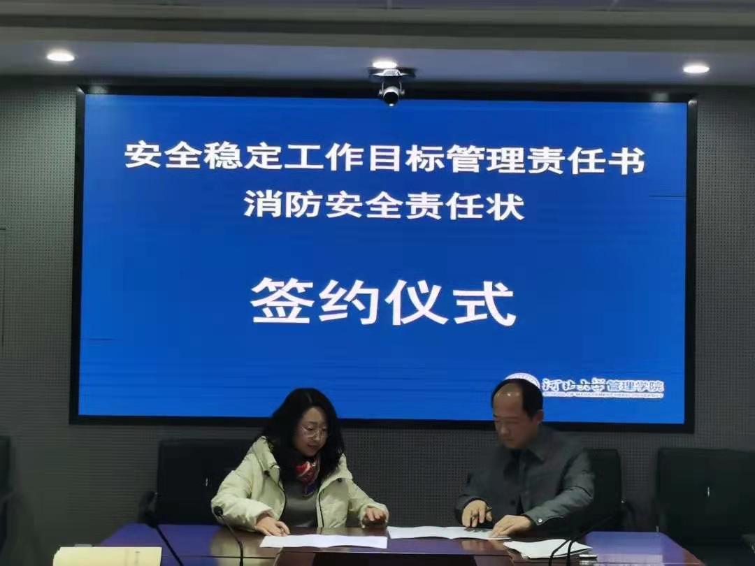本次2021年安全稳定工作目标管理责任书和消防安全责任状签约仪式的成功举办,是对学院2020年整体安全稳定工作进行总结,也是对2021年学院安全稳定工作作出部署,我院将继续牢守安全底线,为学院和学校的改革发展、为安全文明和谐校园的建设创造良好环境。