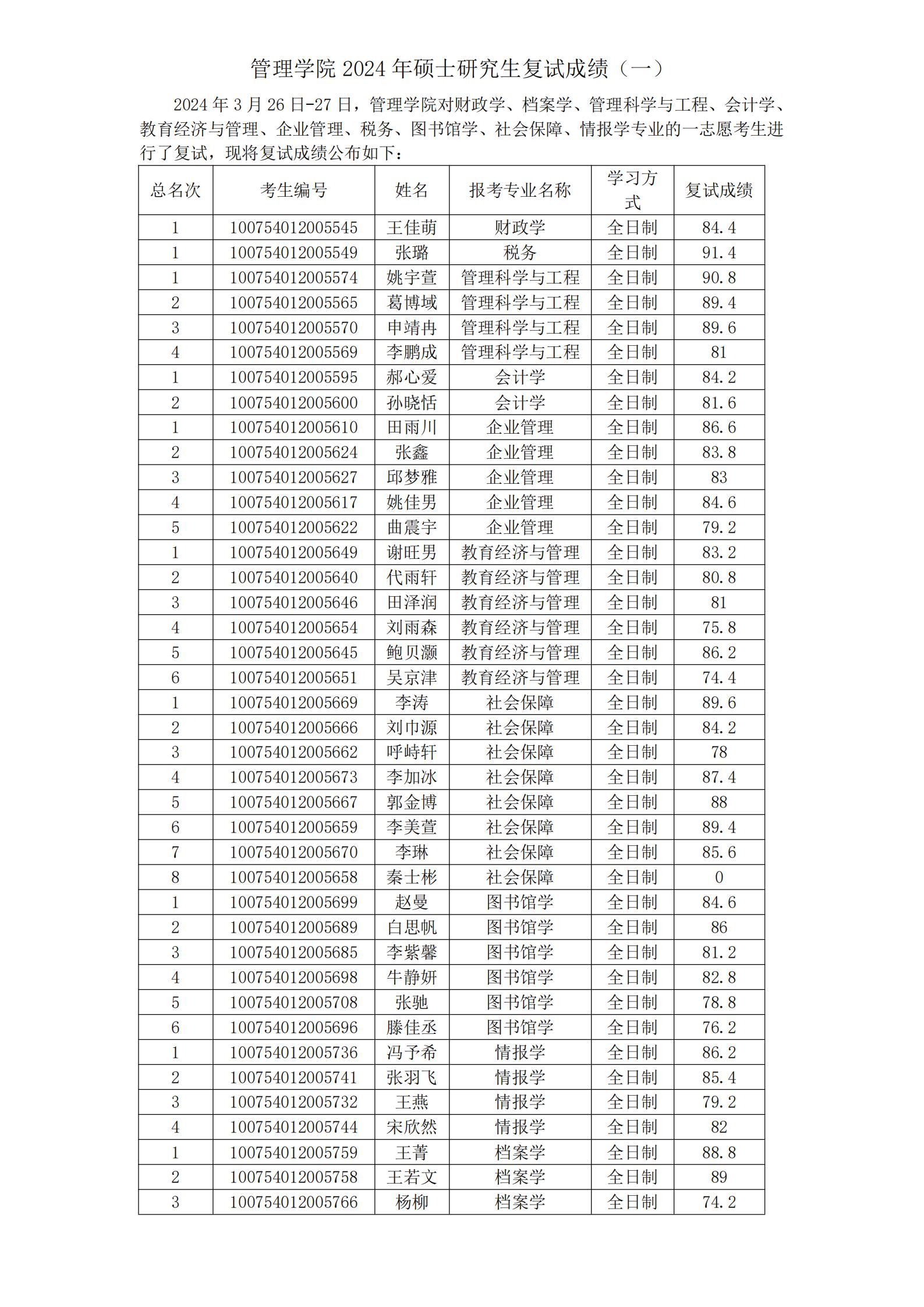 best365网页版登录 2024 年硕士研究生复试成绩(一)