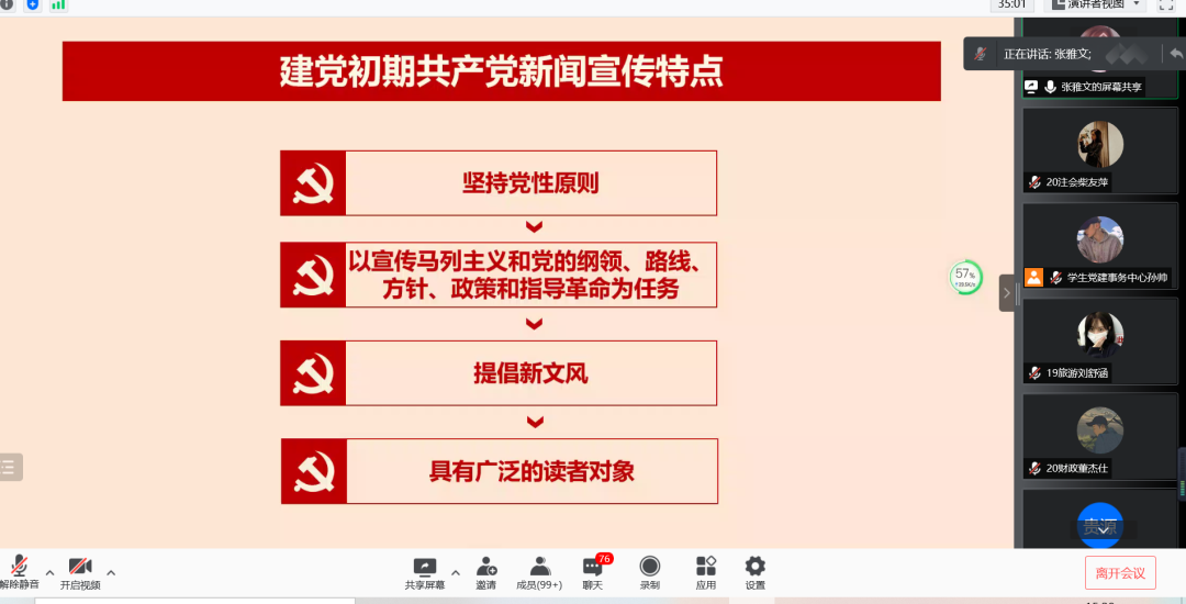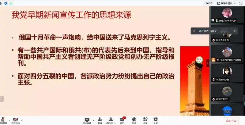 张老师热情洋溢地向大家讲解了中国共产党建党初期的宣传史,给同学们带来了一堂生动精彩的党课。同学们深入了解到了建党初期的一系列宣传活动,意识到了中国共产党发展起来的不易。