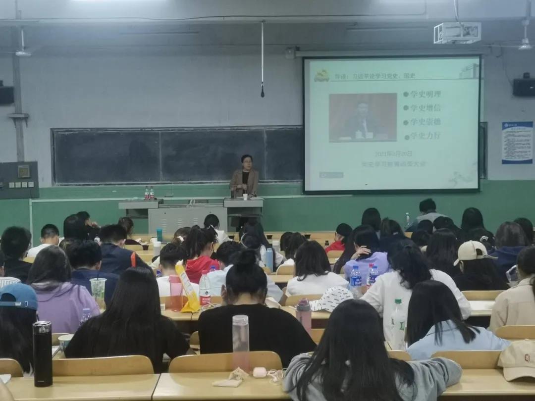 孙教授通过对历史事例引用,从学史明理、学史增信、学史崇德和学史力行四个方面进行深入讲解,呼吁大家牢记历史与初心,坚定自己的政治立场。