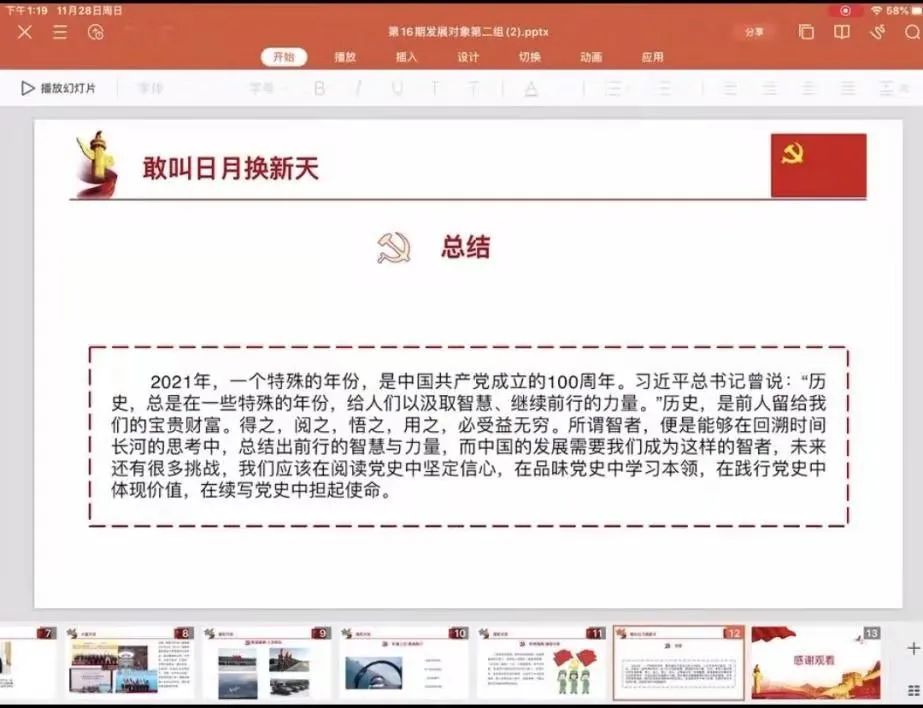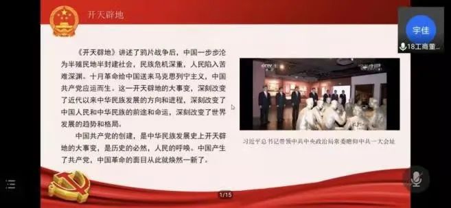 十二个参会小组以ppt的表现形式就《敢叫日月换新天》的主题分别进行发言。