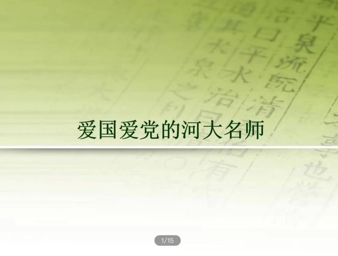一、介绍在河北大学任教的先生们,学习先生们的光辉历史与学术成就,讲述河大先生们爱国爱党的故事。