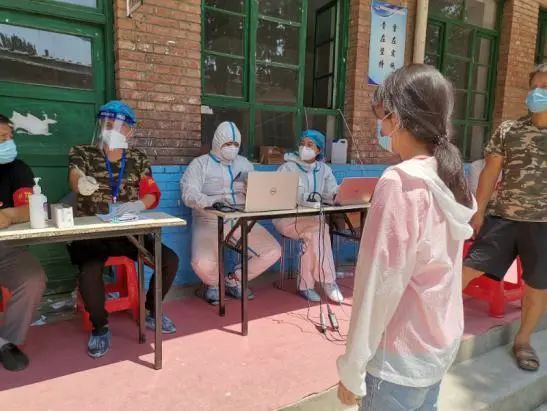 西堤村进行第二次核酸检测,本次在核酸检测现场录入信息,检测完毕后,在村委会进行尚未登记完的人员信息与入户检测人员信息,共检1218人。除此之外,还要根据全村人口总数,核查外出务工等未检人员,汇报打印文件。自早上八点服务至晚上八点,共计12小时。