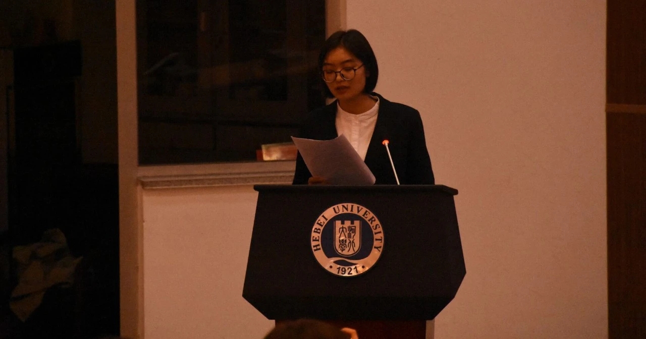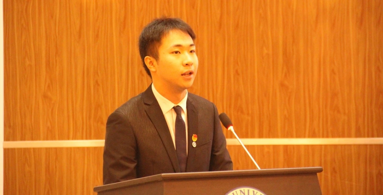 会议尾声,新生代表秦瑜发言。她围绕”青春“和“奋斗”两个话题,鼓励大家向青年榜样学习,坚持不懈,锐意进取。