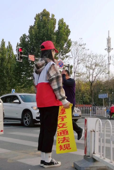 当天下午2:20,参与本次文明交通活动的23位青年志愿者在学校门口集合完毕,大家按各自分好的小组乘车前往各自活动地点,开展“文明交通”活动。志愿者们一身穿红白衣服,头戴红色帽,手拿一杆小红旗,认真地向交警学习指挥交通的方法,并在交警的指导下,耐心的劝导来来往往的过路人。“过马路时一定要走斑马线,只有绿灯亮了方可走”,简单的动作,反复的劝说,就是这样单一的重复,使马路变得井然有序。此刻的他们,成为了城市道路上一道靓丽的风景线,用独特的青春风采感染着行人。赠人玫瑰,手有余香。志愿者们心里也乐开了花,并表示自己将继续发扬新时代青年志愿者的精神,为构建和谐社会贡献自己绵薄之力,激励着更多的人投入到为城市文明的志愿服务中。斑马线上,涌动着一股股文明的暖流;人车流间,活跃着一个个忙碌的身影;繁忙路口,回响着一句句劝戒提醒的话语。伴随着初冬的午后阳光,青年志愿者们在忙碌了两个小时之后,基本完成了文明交通维持工作。