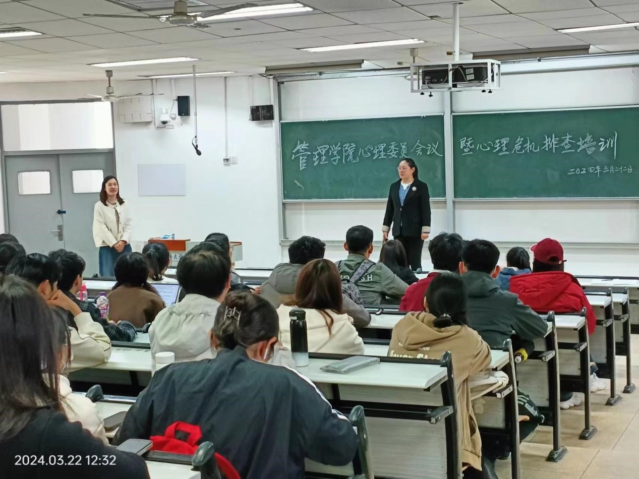 党委副书记张丽首先向同学们强调了心理健康教育工作的重要性,并对学院的心理工作做了整体的介绍。接下来,商似昭老师具体讲解了心理委员的角色定位,工作职责和工作内容,强调了心理危机排查工作的重要性,并介绍了具体的心理危机排查方法。商老师鼓励心理委员们深入学习心理知识,在加强自身能力的同时更好的帮助身边的同学。最后,张丽书记对培训会进行了总结发言,希望心理委员们积极发挥自身作用,促进心理健康知识的传播与推广,为营造温暖和谐的班级氛围贡献力量。