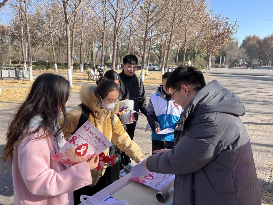 为贯彻第36个“世界艾滋病日”宣传主题,提高同学们对艾滋病的认识,普及艾滋病预防知识,营造广泛参与艾滋病防治工作的良好氛围,12月1日上午,best365网页版登录研究生会在七一路校区生活区开展“为爱防艾,校园同行”预防艾滋病主题宣传活动,面向全校学生宣传艾滋病防治知识。