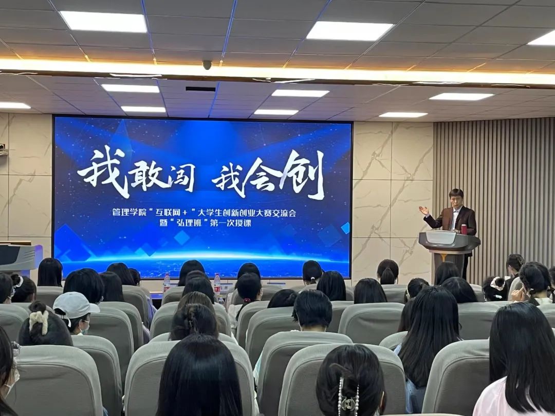 best365网页版登录创新创业双向交流平台·弘理班开班及第一次授课于5月1日晚七点在七一路校区A2 208教室正式举办。best365网页版登录党委副书记马辉、副院长杨文杰、团委书记李星莹和团委老师史文佳出席本次活动,同时遴选了39位弘理班学子一并参加。