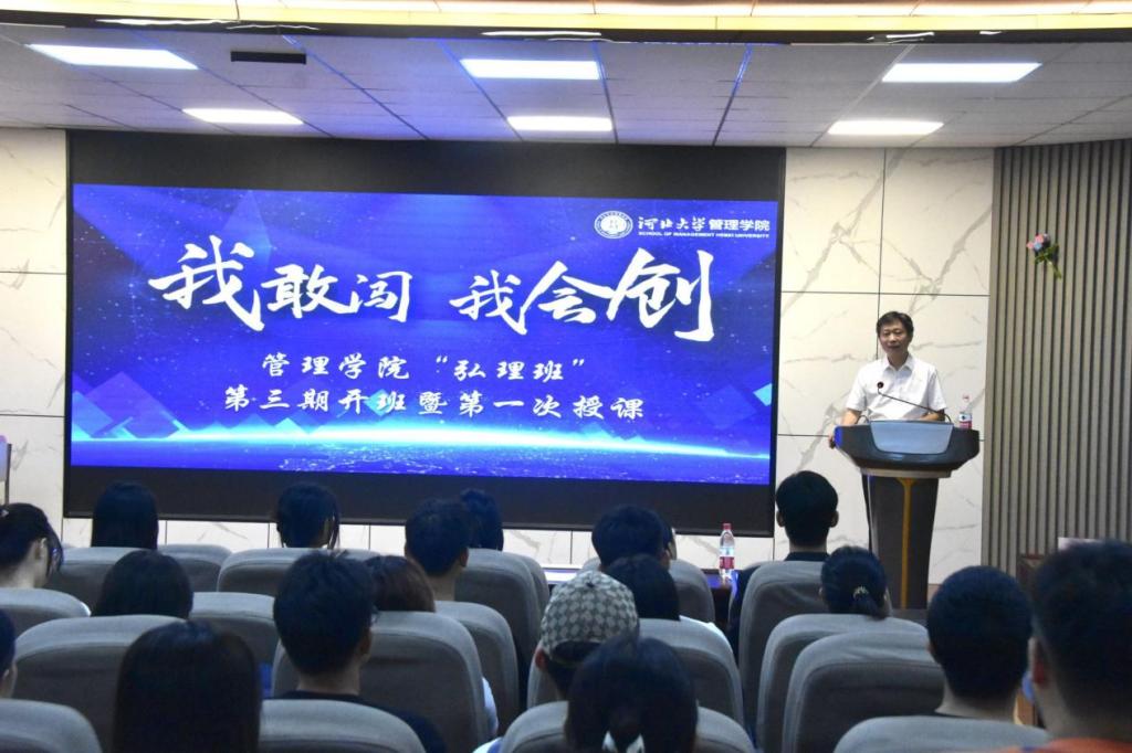 “以赛促创,以赛促学”。河北大学科技园董事长、弘理班特聘导师邢志勇老师做导师寄语。邢老师指出,弘理班不仅是一个学习的平台,更是一个创新的平台。大学科技园作为连接学校与社会的桥梁,始终致力于为同学们提供最佳的实践与学习平台。并鼓励学员们携手并进,在创新竞赛道路上越走越远。